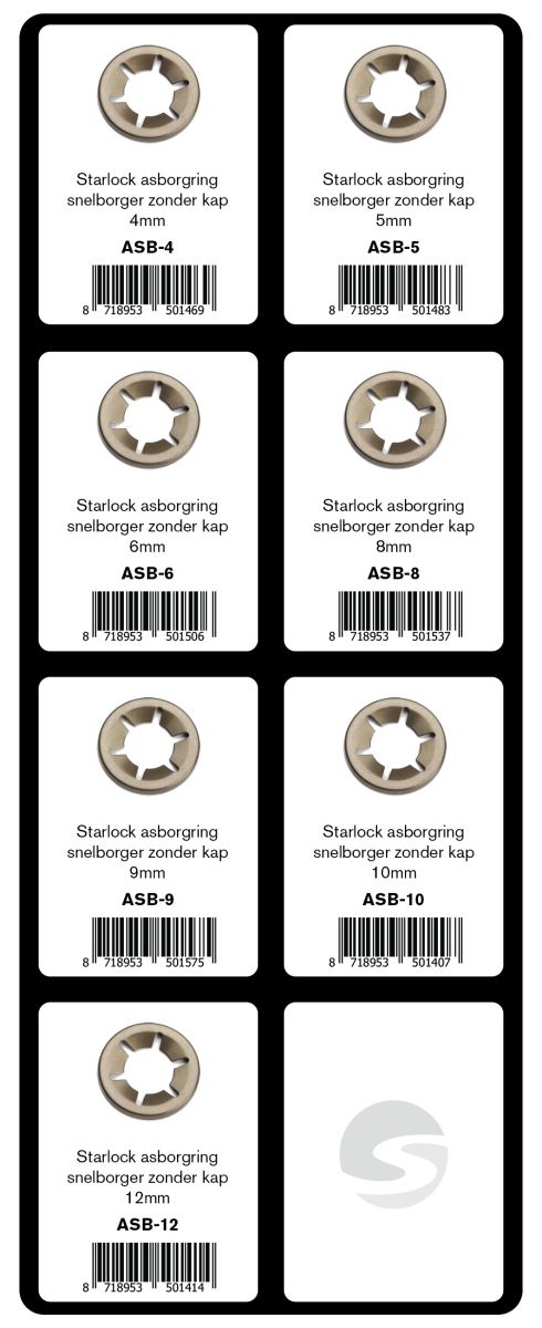 | 20 | ASB-9 | STARLOCK BAGUE PINCE POUR AXE FIXATION POUR ARBRE SANS CHAPEAU 9MM (20PC) |