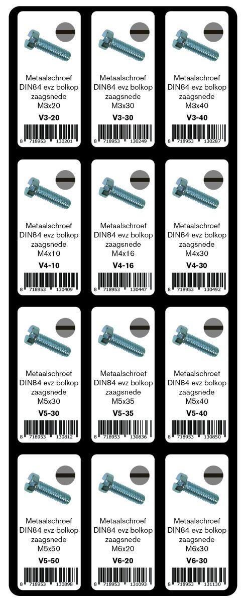 | 20 | V5-30 | VIS À MÉTAUX DIN84 ÉLECTROZINGUÉ TÊTE RONDE TRAIT DE SCIE M5X30 (20PC) |