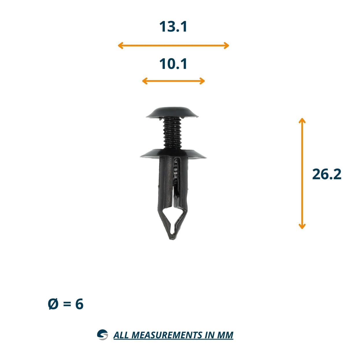This screw is applied in the car, truck and other vehicles industry. This clip comes 100% corresponding to the OE quality as this first assembly is mounted. With an OE clip, panels, strips, bumpers and other parts are connected to each other or the chassis of the vehicle. Often the clip breaks when discontinuation of these parts. Replacement of the correct clip ensures that vibration or release is prevented from the part. A clips almost always has an OE song that can be referred to. A = 6mm