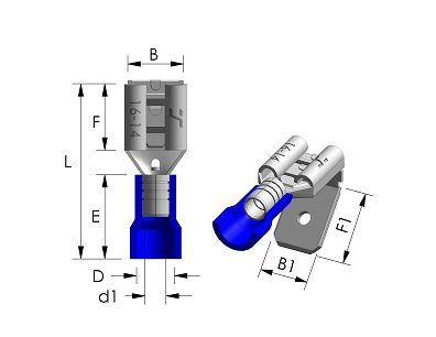 PVC KABELSCHOEN STANDAARD PIGGY BACK BLAUW 6,3X0,8 (100)
