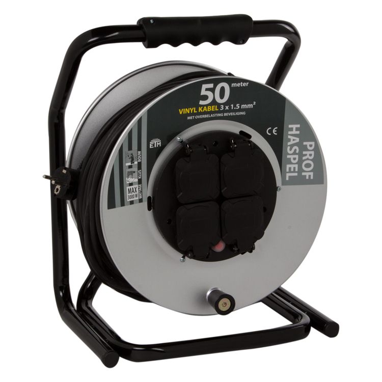 KABELHASPEL NEPROEEN 3X1,5MM2 ZWART 50 METER